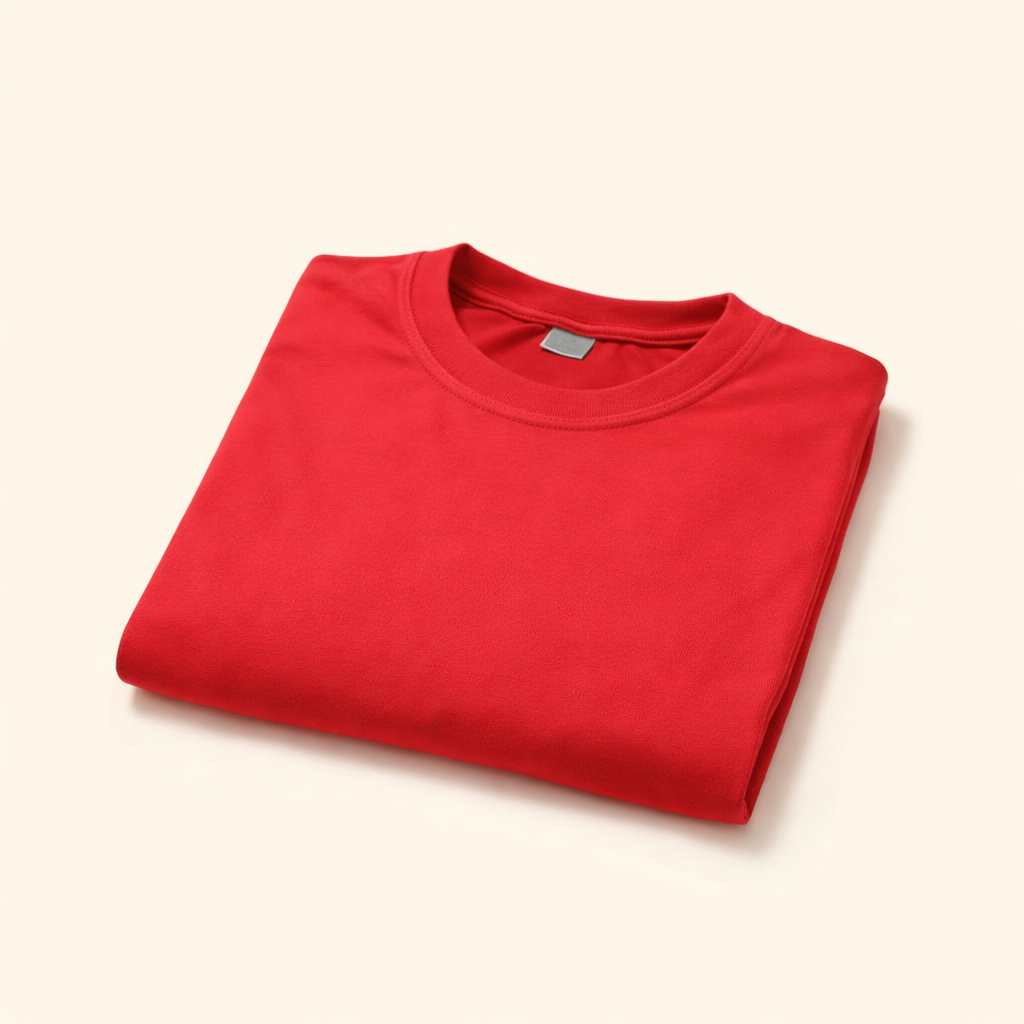 Round Neck Red Color Superior Cotton Lycra T-Shirt